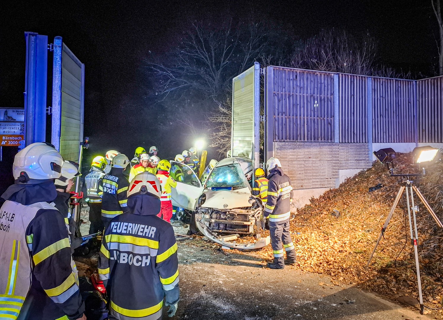 Ein PKW kam aus noch ungeklärter Ursache von der Fahrbahn ab und prallte mit voller Wucht seitlich gegen das Tor eines Serviceparkplatzes. Durch die enorme Wucht des Aufpralls wurde das massive Tor durchbrochen und der PKW schwer deformiert. Die Lenkerin wurde dabei im Fahrzeugwrack eingeklemmt.